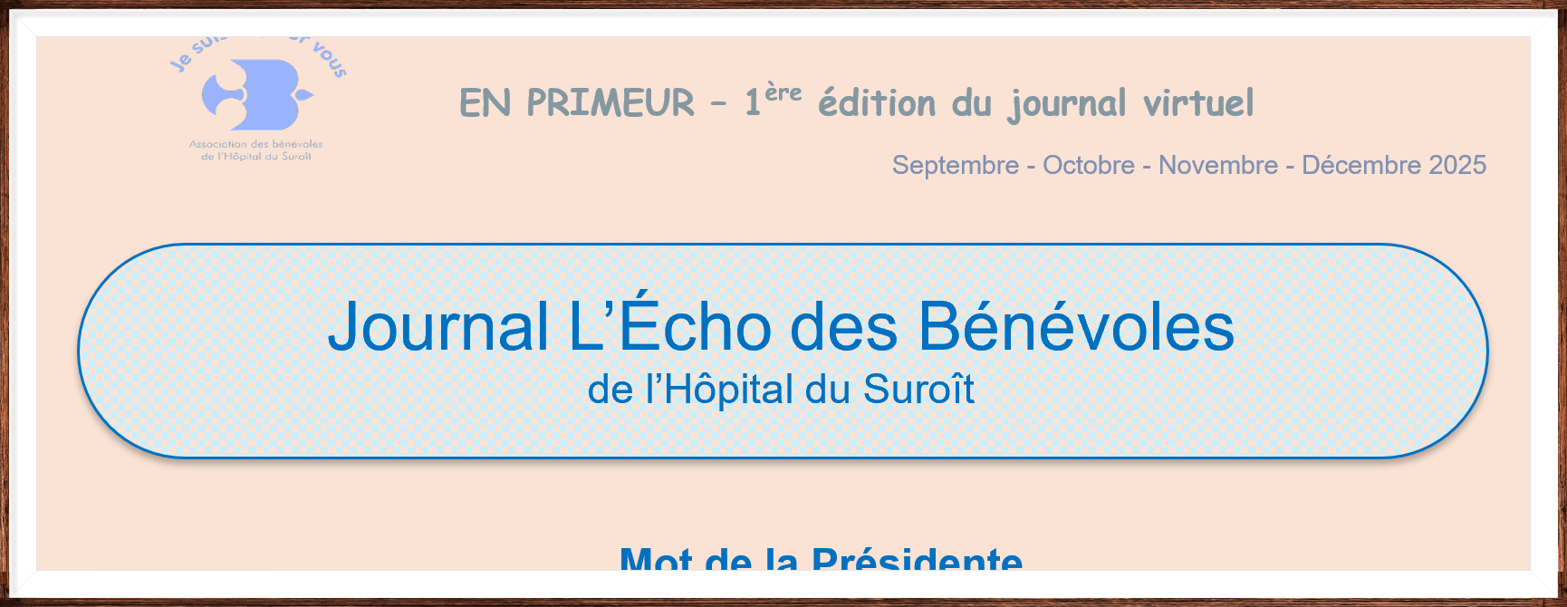 Étant fièrement bénévole, j'ai eu la chance de créer un projet vraiment incroyable : lancer le tout premier journal numérique spécialement conçu pour les bénévoles de l'hôpital du Suroît. Ce journal a mis en avant les actions de l'association et le travail incroyable de ses bénévoles, avec une sélection d'articles variés et inspirants.