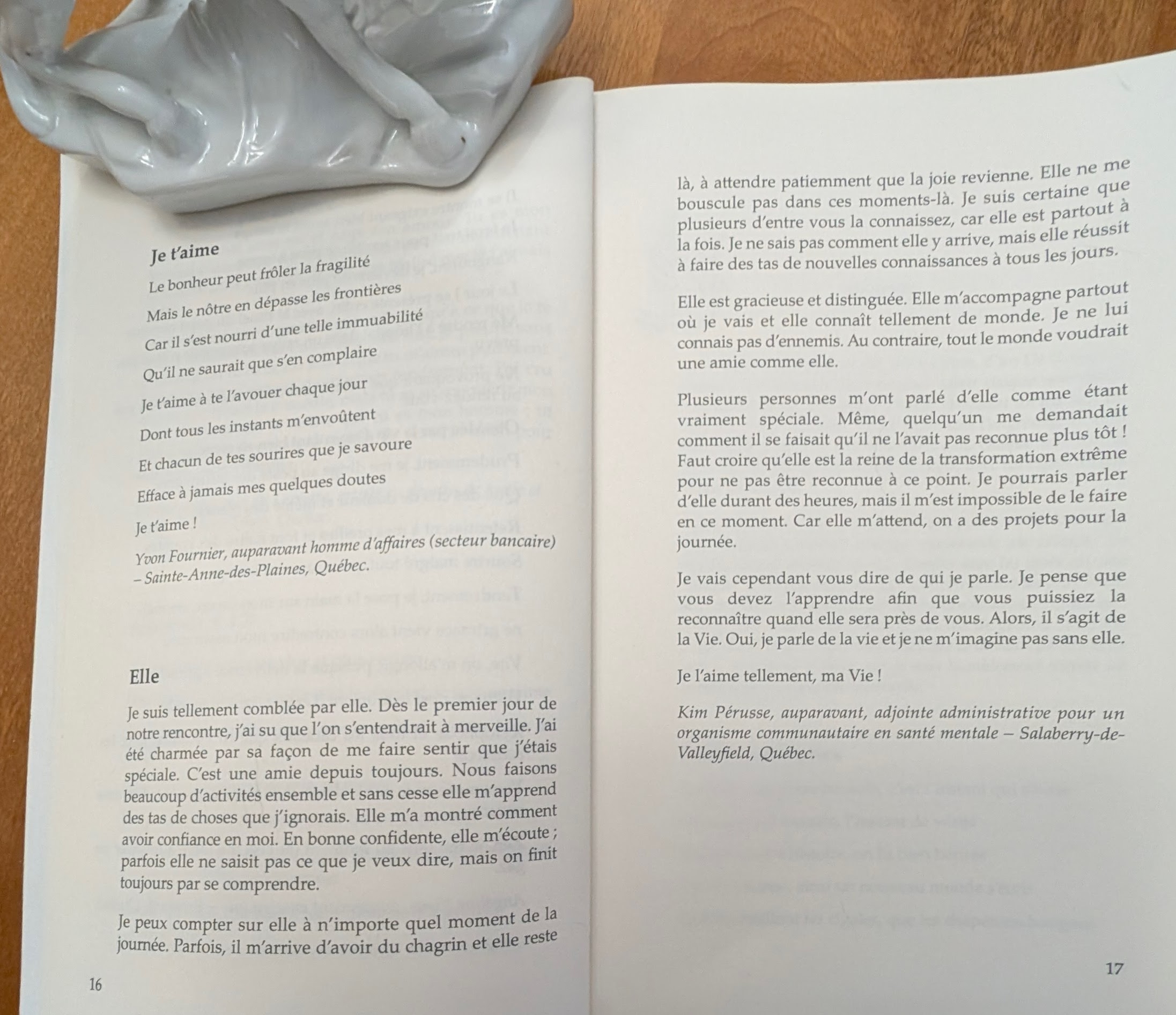 Une de mes œuvres a été publiée dans le livre intitulé « BONJOUR, COMMENT ALLEZ-VOUS ? », une idée originale d'Hélène Turmel, membre de l'Association internationale des méthaphysiciens.nes du Québec, et qui démontre à quel point ma production écrite est variée. Vous pouvez vous procurez le livre sur le site d'Hélène Turmel.